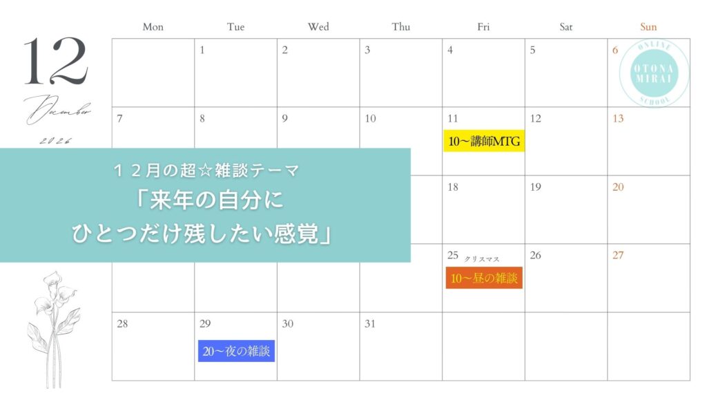 2026年大人みらいオンラインスクールカレンダー