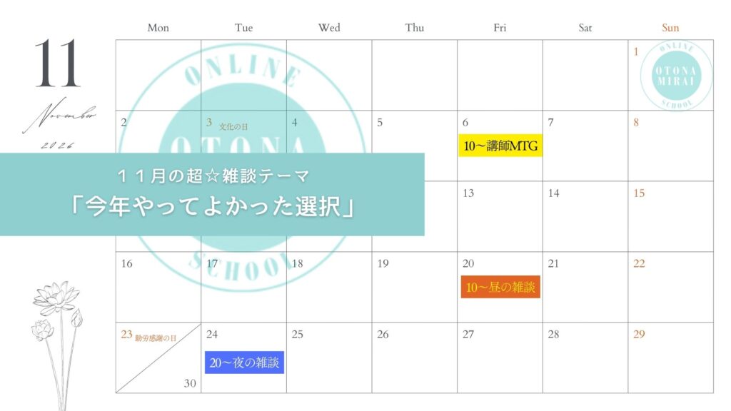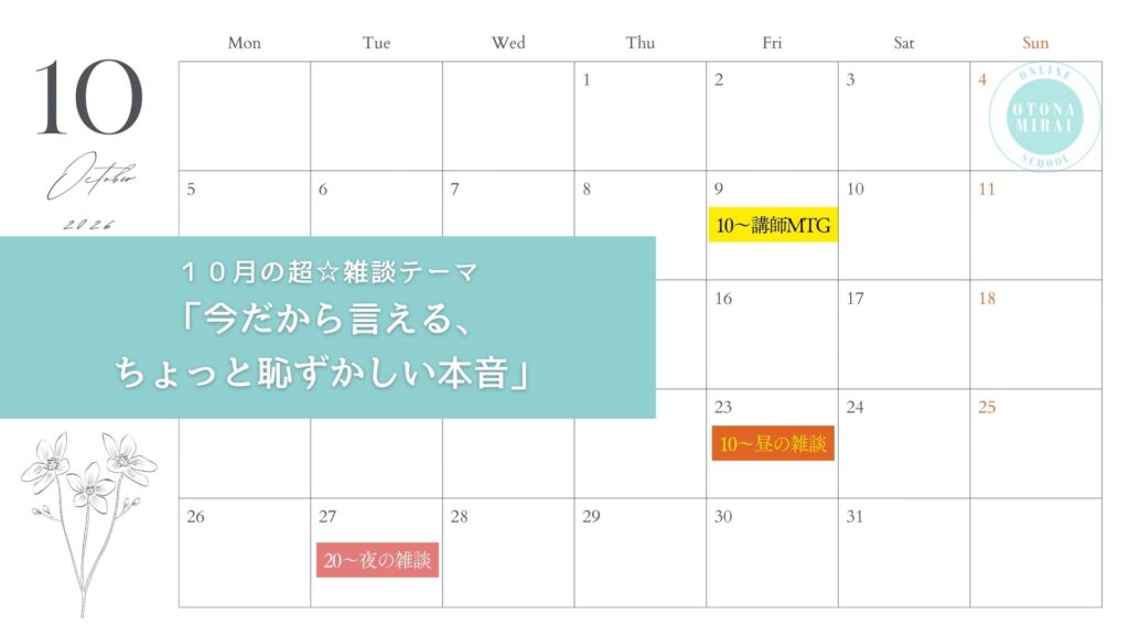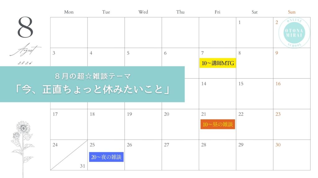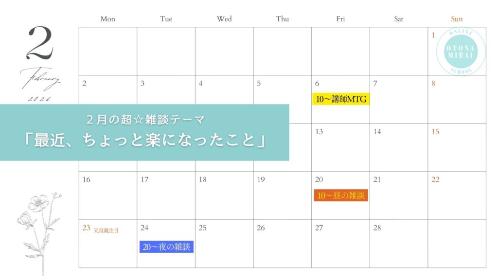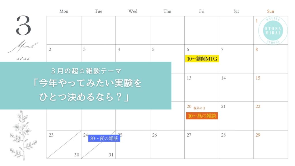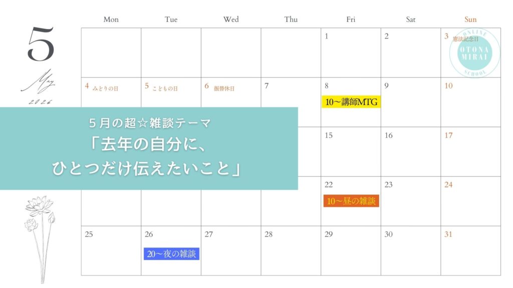 2026年大人みらいオンラインスクールカレンダー